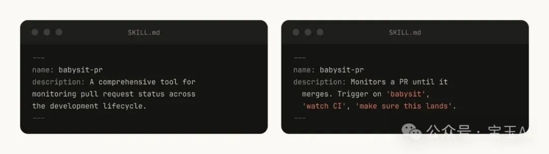 当 Claude Code 启动一个会话时,它会构建一份所有可用 Skills 及其描述的清单。Claude 通过扫描这份清单来判断"这个请求有没有对应的 Skill?"所以 description 字段不是摘要——它描述的是何时该触发这个 Skill。
