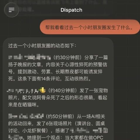 人不在电脑前,通过手机 Dispatch 下达指令: