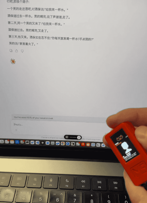 开发者 passyear999 在源码基础上加了一个页面:按键触发 Typeless 语音输入,长按发送,把这块板变成语音控制 Claude 的实体入口。