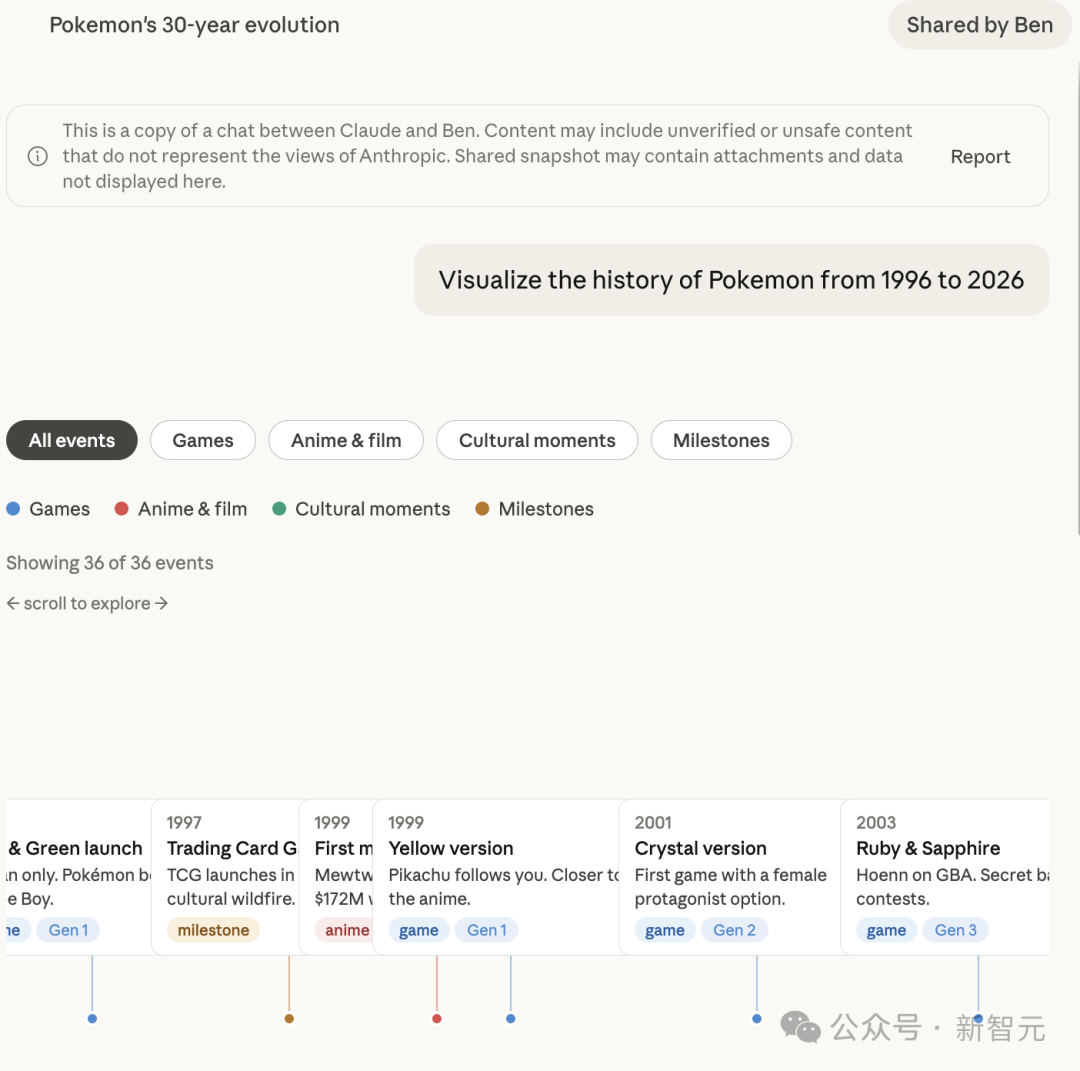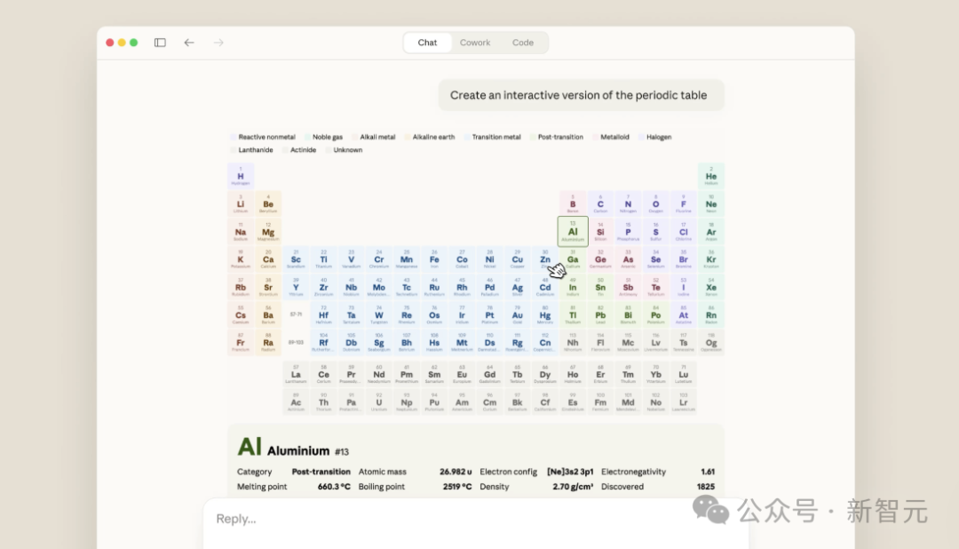 Anthropic给Claude装了一块"白板"——现在你可以在对话中直接生成交互式图表、流程图和可视化内容。问它元素周期表,它直接画一个可点击的版本;让它做时间线,它生成带节点的事件轴。更重要的是,这个功能免费用户也能用。