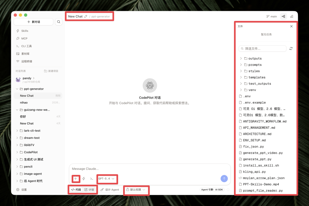 Codepilot 采用项目制,每个聊天对应一个本地文件夹。