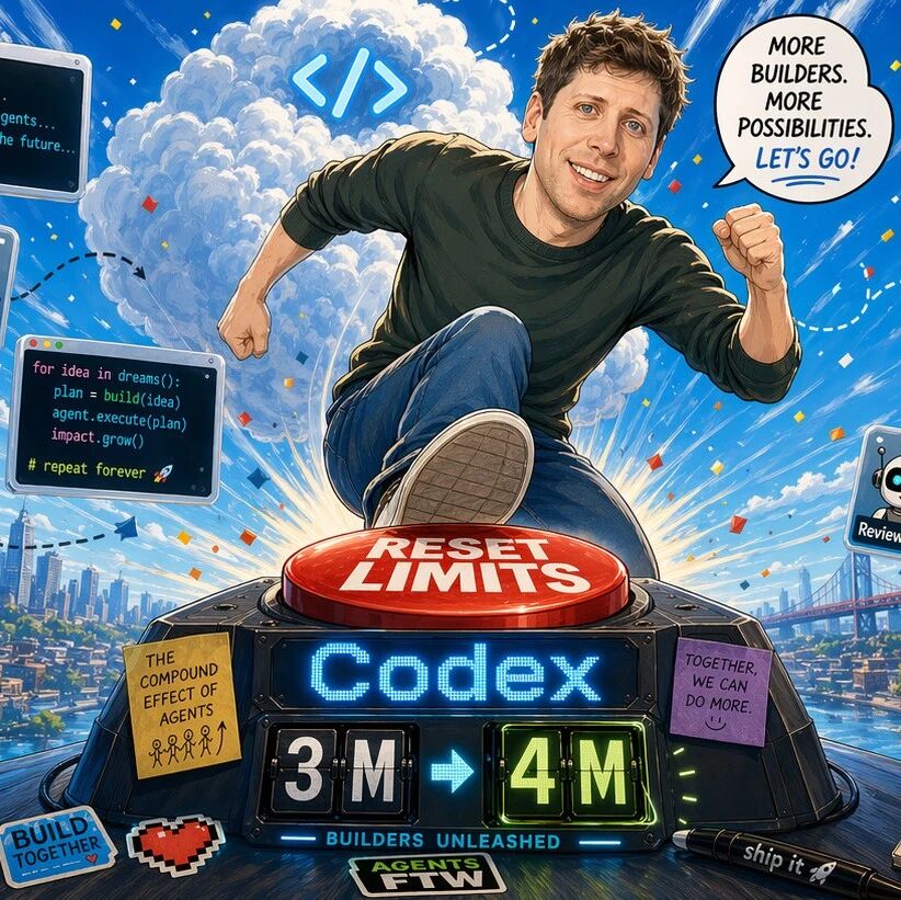 OpenAI 明显在用"大撒币"策略抢用户。Codex 多次重置所有套餐的使用限制,最近不到两周新增了 100 万用户,为庆祝这件事又重置了一次速率限制。