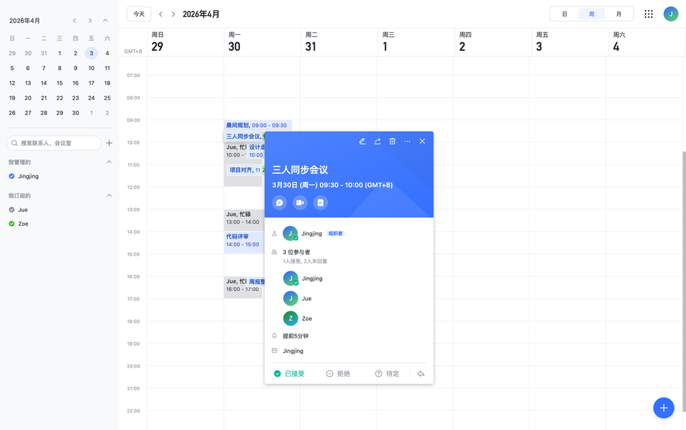 AI 会读取群成员日历,自动计算空闲时间和时区,推荐会议时间并完成创建。