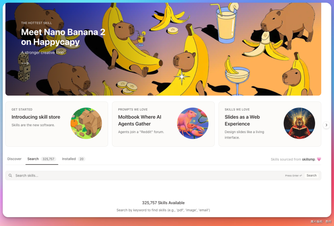 | Skills 数量 | 32 万+ | 取决于社区 | 无 Skills 概念 |