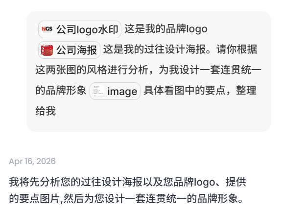 把 logo 和现有品牌素材一起扔给 Lovart 的 Agent,让它分析你的品牌视觉特征。