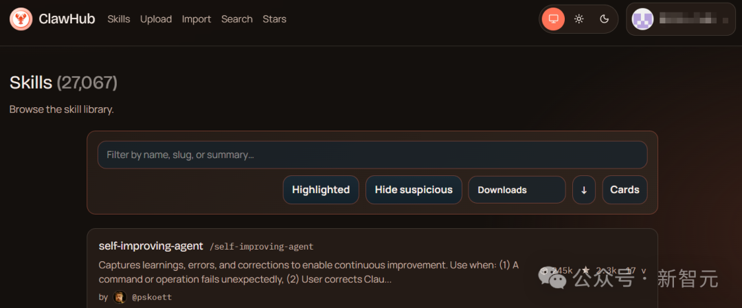 打开 ClawHub,公共技能市场里已经塞进了超过 2 万个 Skill。搜索、浏览器操控、文档处理、PPT 生成……各路开发者疯狂上传,整个市场卷得飞起。