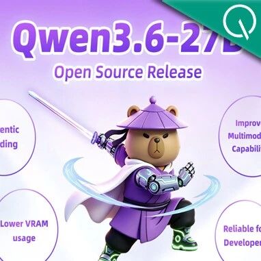 阿里Qwen团队开源Qwen3.6-27B,纯密集架构,智能体编程全面超越前代397B旗舰,原生多模态,Hugging Face可直接下载。