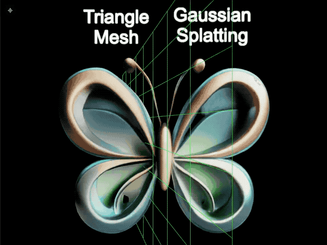 每个 splat 记录着自己在空间中的位置、三条轴的半径长短、朝向角度、RGB 颜色值和透明度。数百万个 splat 叠加在一起,就能呈现出砖墙的颗粒感、树叶的透光感、玻璃的反射。