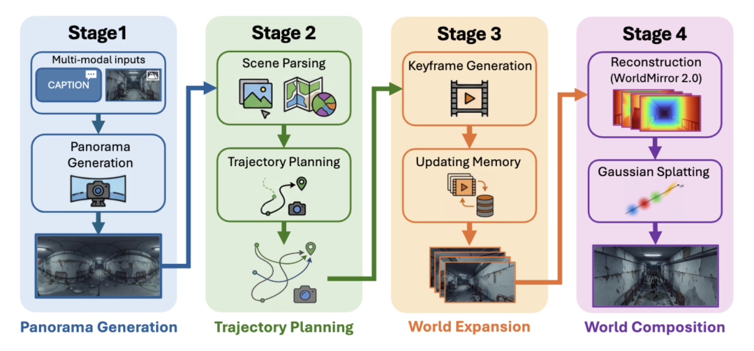 HY-World 2.0 的核心能力是三个:世界生成(从文字/图片/视频创建3D空间)、世界重建(从多视角图片重建精确3D场景)、全景图生成。