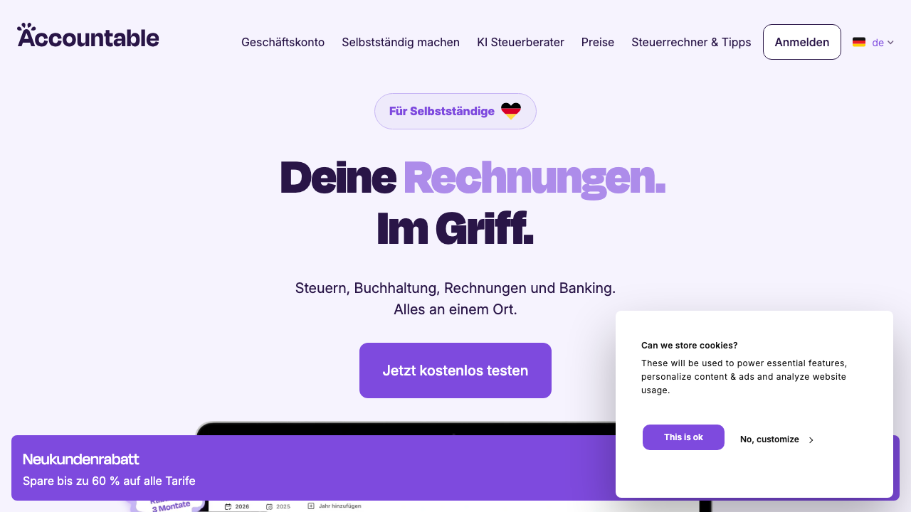 Accountable 是一款专为德国和比利时市场的自由职业者和小微企业设计的移动优先税务与财务管理工具。它通过整合发票管理、费用追踪、银行对账以及直连税务局的报税功能,帮助零财务背景的用户轻松应对复杂的欧洲税务体系。
