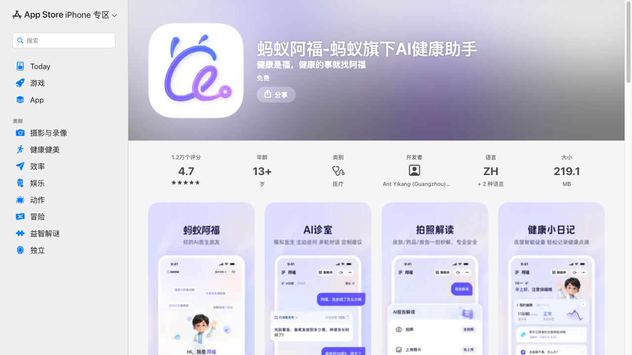 蚂蚁阿福 是一款 AI健康,蚂蚁集团旗下AI健康助手。