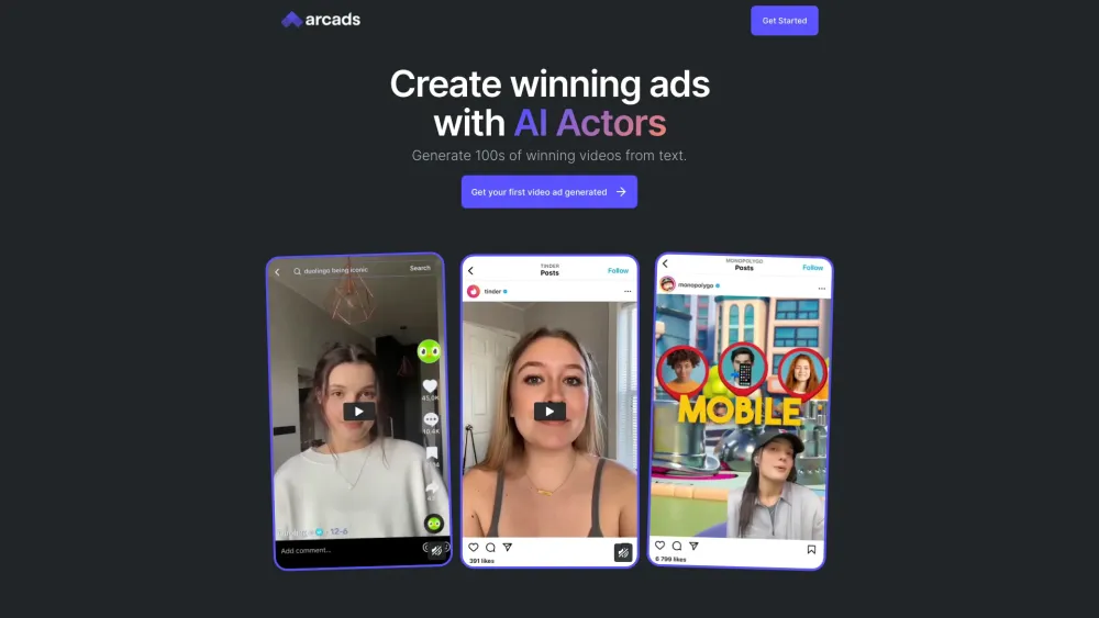 Arcads是一个AI驱动的视频广告生成平台,使用AI演员从文本快速生成数百个成功的视频广告,为增长营销团队提供革命性的广告创作工具。