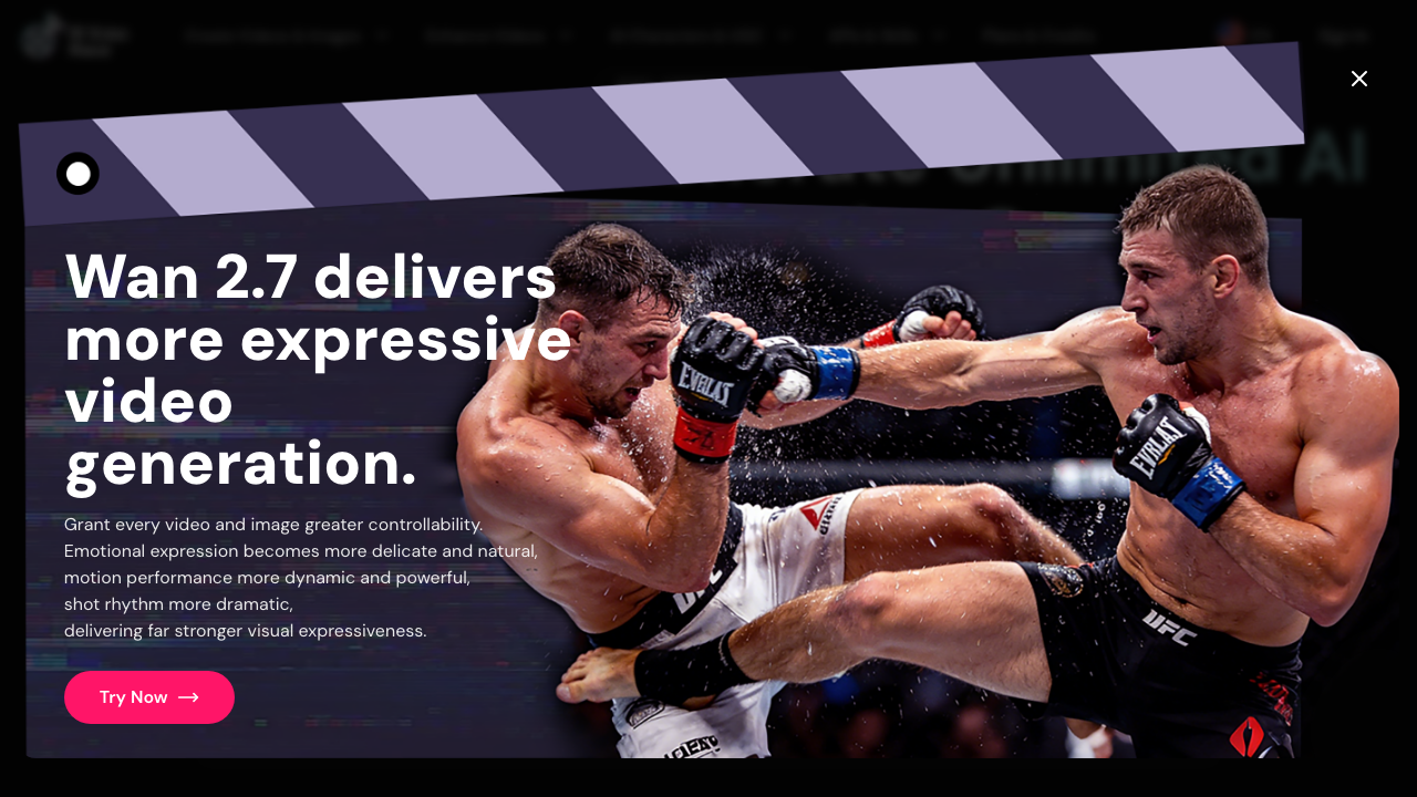 独特优势 这是目前市场上对轻量级创作者最友好的全能选择。在竞品普遍依赖复杂且昂贵的积分制环境下,它敢于开放基础画质的无限量生成,并搭载了表现优异的Wan 2.2大模型,完美平衡了零门槛的新手体验与专业实用的营销功能双重核心需求。