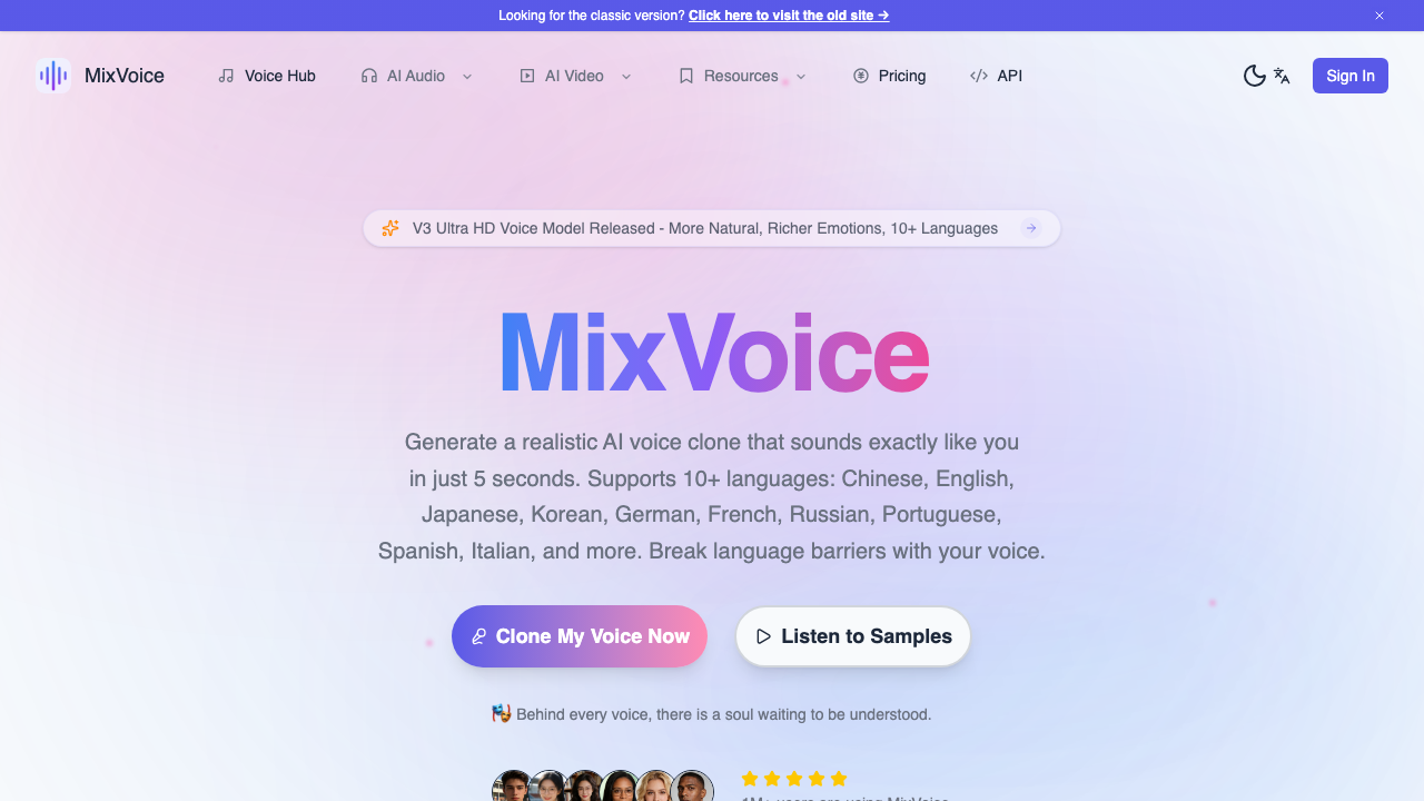 Free Voice Cloning 是一款由 MixVoice 开发的极速人工智能声音克隆与文本转语音(TTS)平台,主打零技术门槛与高效率。它专为内容创作者、播客和营销人员设计,只需5秒音频即可瞬间生成高度逼真的数字分身,让你的创意表达跨越语言障碍。