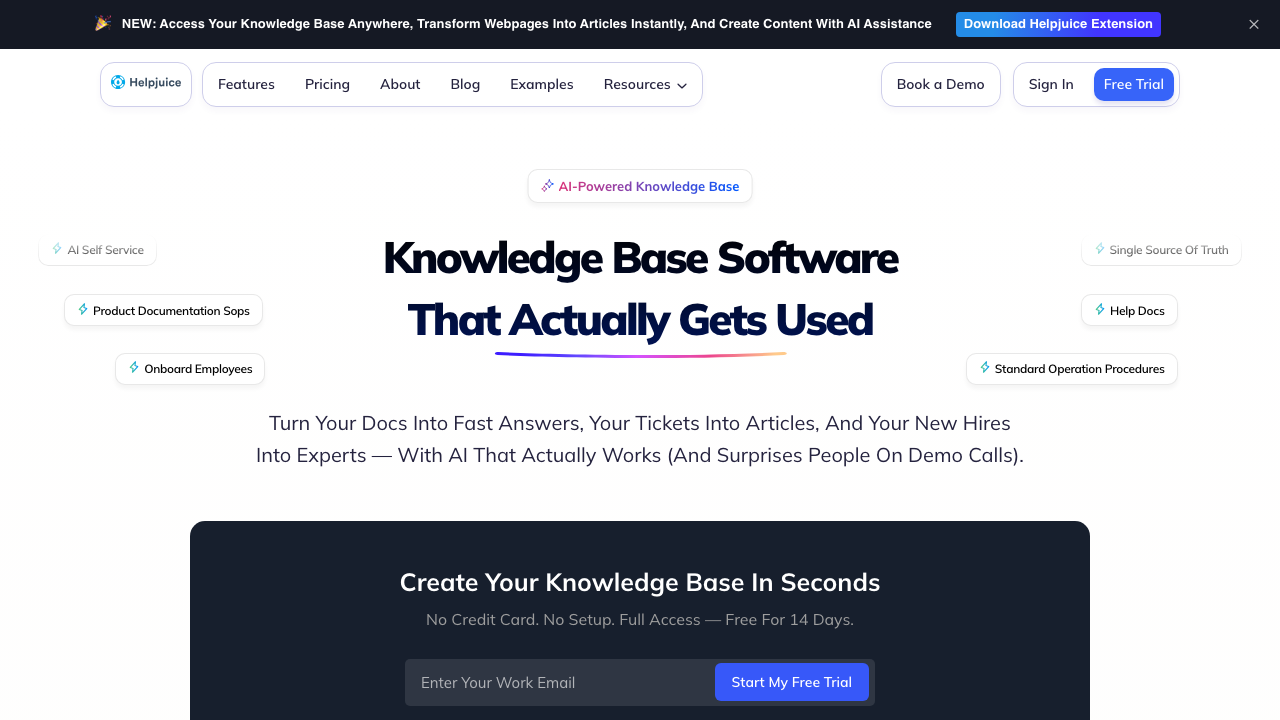 Helpjuice 是一款专为降低支持工单数量和加速员工入职而设计的企业级智能知识库管理平台。它不仅能作为团队“唯一的信息真相源”,更通过强大的AI套件将静态文档转变为能够真正理解用户意图的智能问答引擎,是中大型企业建立权威帮助中心的绝佳选择。