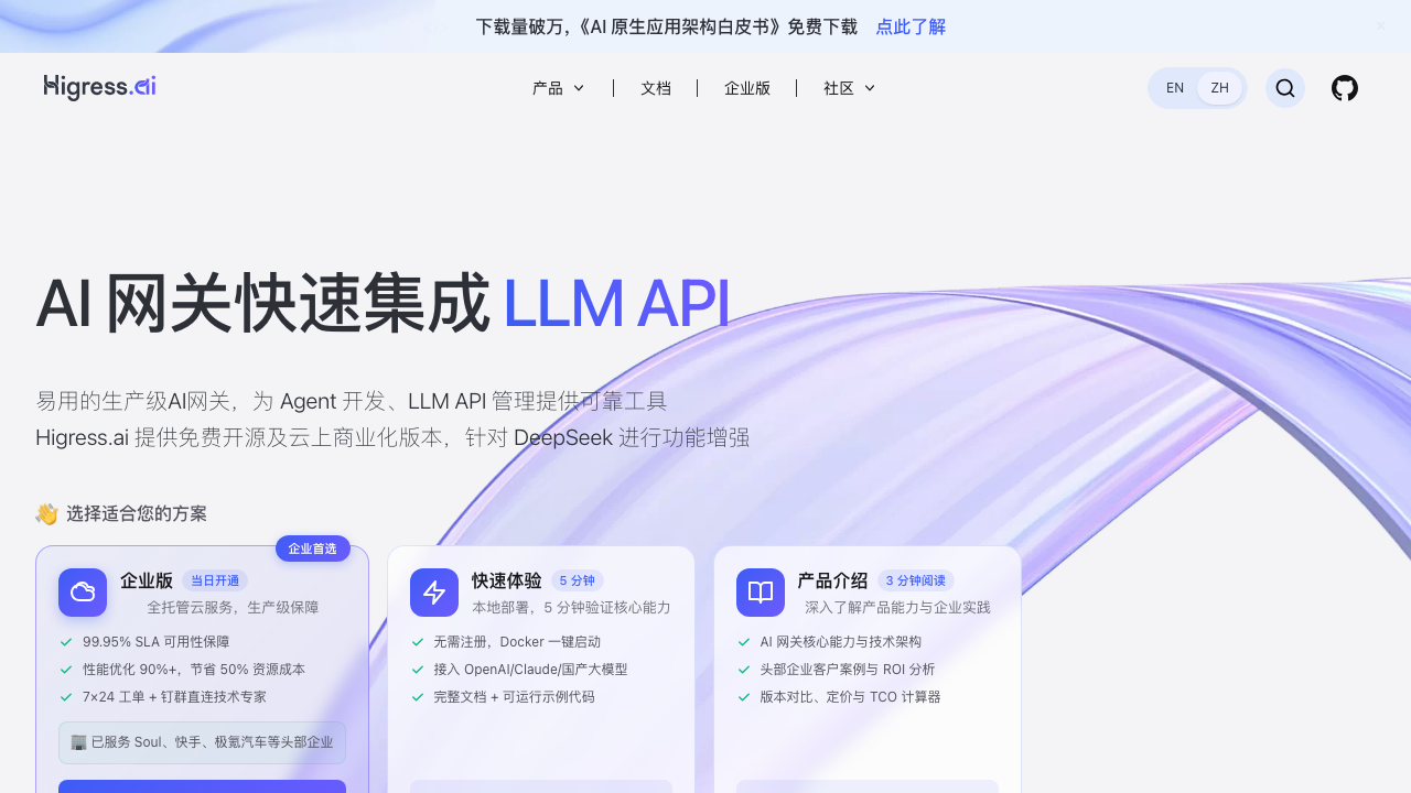 Higress.AI 是一款由阿里巴巴开源、基于 Envoy 构建的生产级云原生 AI API 网关。它不仅继承了传统流量网关和微服务网关的高性能与高稳定性,更是为企业接入大模型和开发 AI Agent 提供了统一管理、成本控制和安全防护的基础设施。