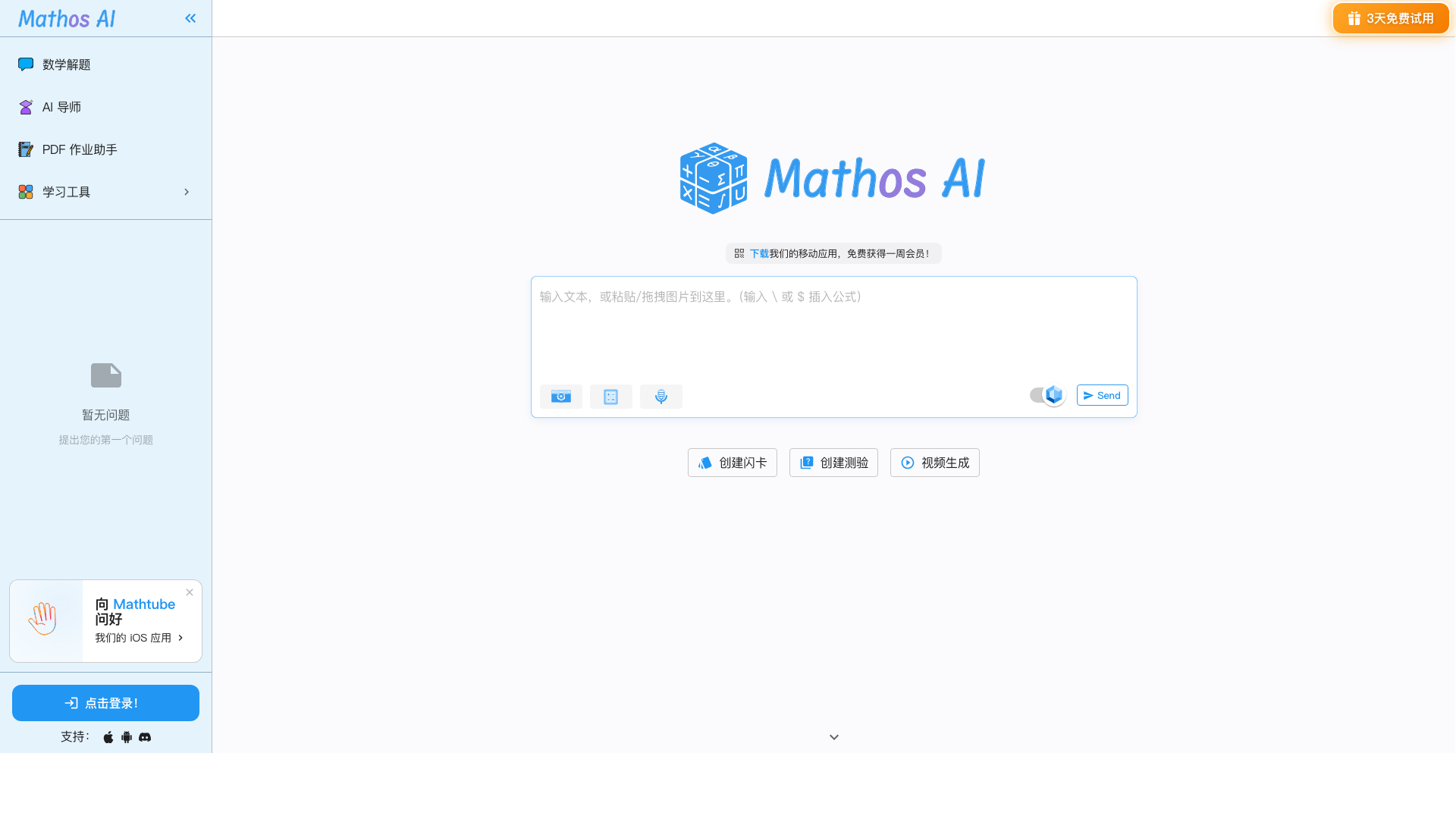 独特优势 相比 Photomath 或 Symbolab,Mathos AI 的杀手锏在于它不仅仅提供计算结果,而是通过顶级的专有数学模型和生成式 AI 带来了极强的互动性。它能处理大学级别的深度应用题,其多模态输入和 PDF 圈选解答功能更是让市面上的竞品难以望其项背。