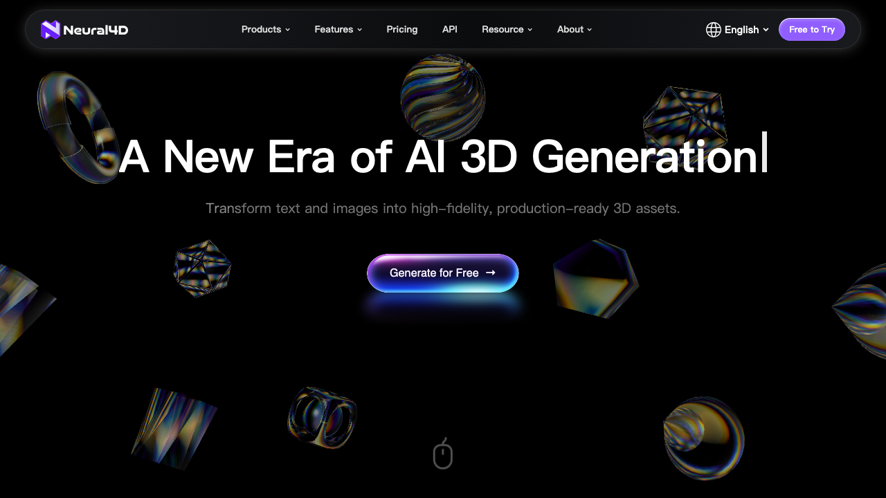 Neural4D 是一款前沿的AI 3D生成平台,专注于将文本和2D图像快速转换为高质量、生产级的3D模型。它专为游戏开发者、3D设计师及3D打印爱好者打造,极大降低了3D建模的门槛与时间成本。