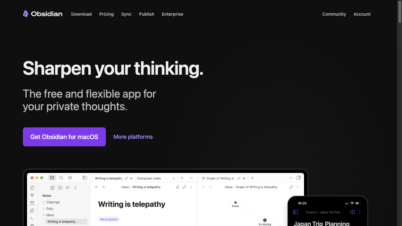 Obsidian 是一款 AI生产力工具,本地优先的双向链接笔记应用。