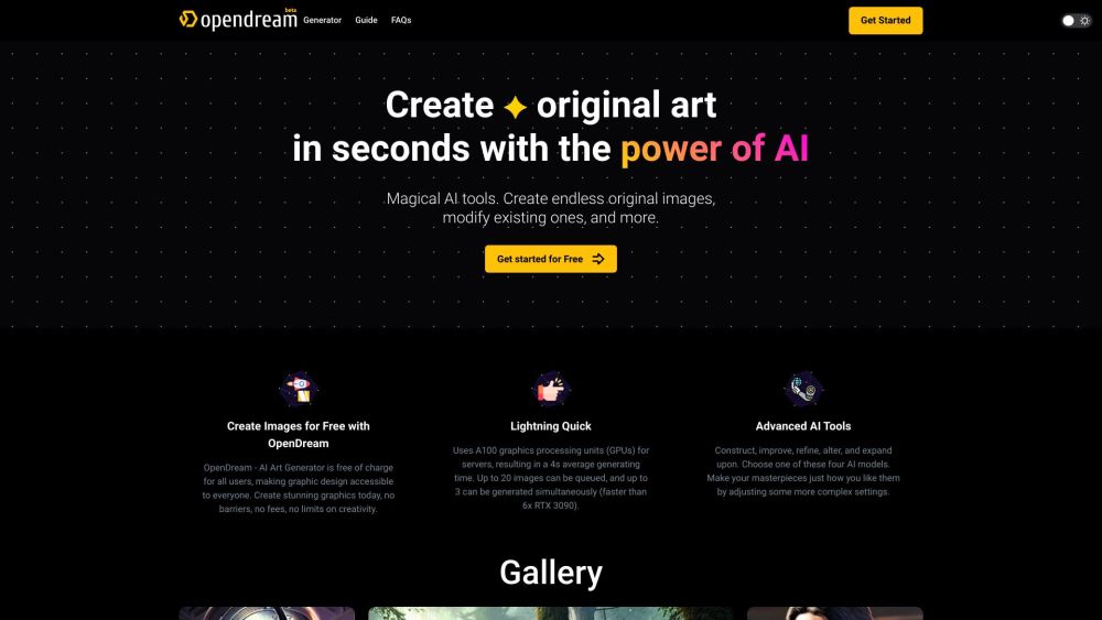 OpenDream 是一款 AI绘画,免费AI艺术生成器,将文本转换为图像,提供可自定义模板和商业使用权。