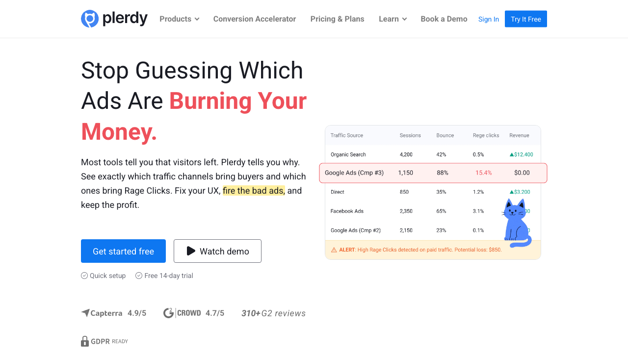 独特优势 有别于仅提供单一功能的传统监控工具,Plerdy 突破性地在深度的 UX 行为追踪基础上整合了自动化每日 SEO 审计,构筑了独一无二的数据完整性。更为难得的是,其超轻量化脚本几乎不会拖慢宿主网站核心性能,并在实测中实现了 99% 的高精度动态捕捉,展现了卓越的性价比。