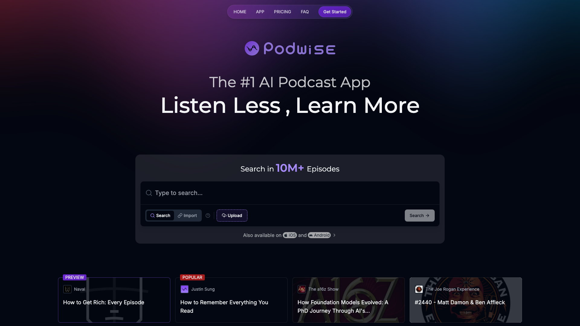 Podwise 是专为播客学习设计的 AI 知识管理工具,采用「Read, before Listen」理念,将数小时播客转化为 3 分钟结构化概览。基于 OpenAI Whisper 和多模型动态调用技术,专注解决播客听众的核心痛点:如何从海量内容中快速提取有价值的知识。