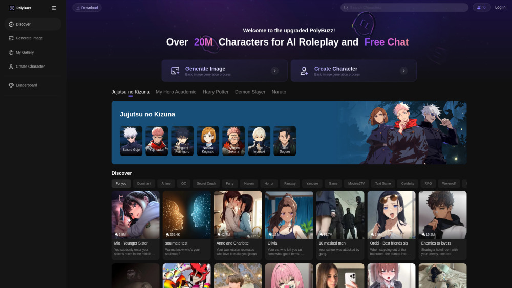 应用场景: 用户可以使用PolyBuzz.ai与AI角色聊天,进行角色扮演;创作者可以使用PolyBuzz.ai创建自己的AI角色;动漫、电影、游戏爱好者可以使用PolyBuzz.ai与喜爱的角色互动;用户可以使用PolyBuzz.ai进行娱乐和放松。