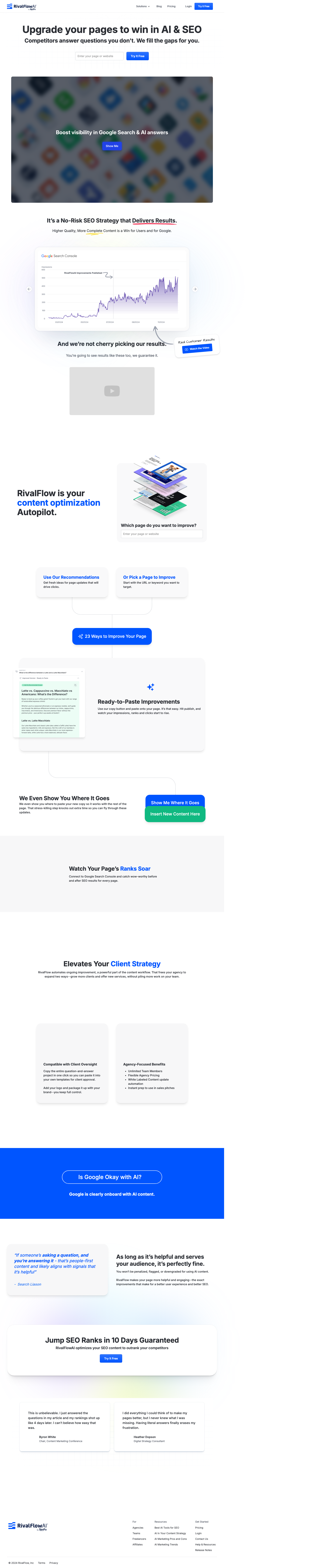 独特优势 与 Surfer SEO 或 Clearscope 等侧重于从零撰写或全局打分的工具不同,RivalFlow AI 展现了极强的垂直定位:它不审计整个域名或罗列枯燥指标,而是直接进行点对点的单页竞品决胜,是现有老文章“翻新拉升”的最高效利器。