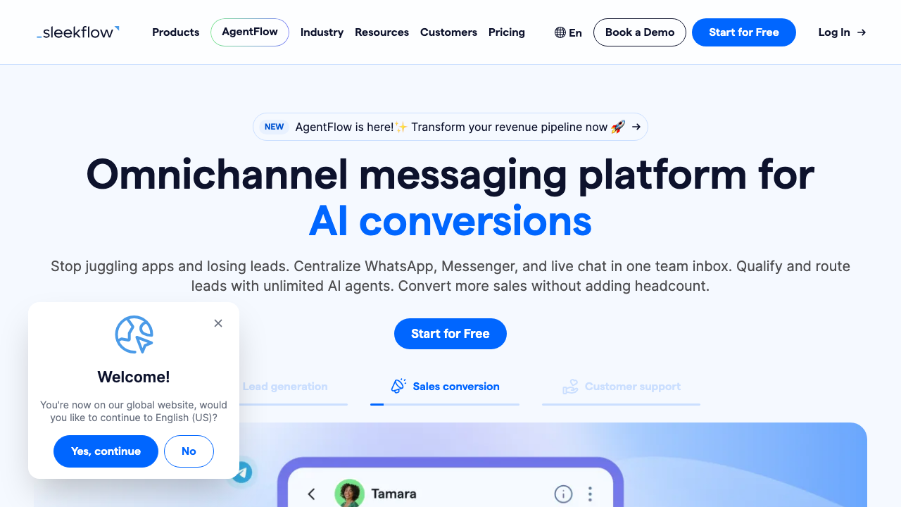 SleekFlow 是一款备受瞩目的全渠道对话式 AI 套件,同时也是 Meta 官方的 WhatsApp Business 解决方案提供商。它致力于帮助企业实现“对话即增长”,将零散的社交通讯渠道与 AI 自动化、CRM 深度融合,是零售电商和服务行业将日常聊天转化为实实在在销售业绩的终极利器。