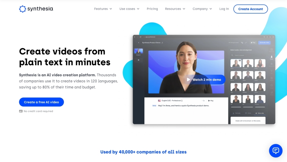 Synthesia 是一款 AI音视频,企业级AI视频生成平台。