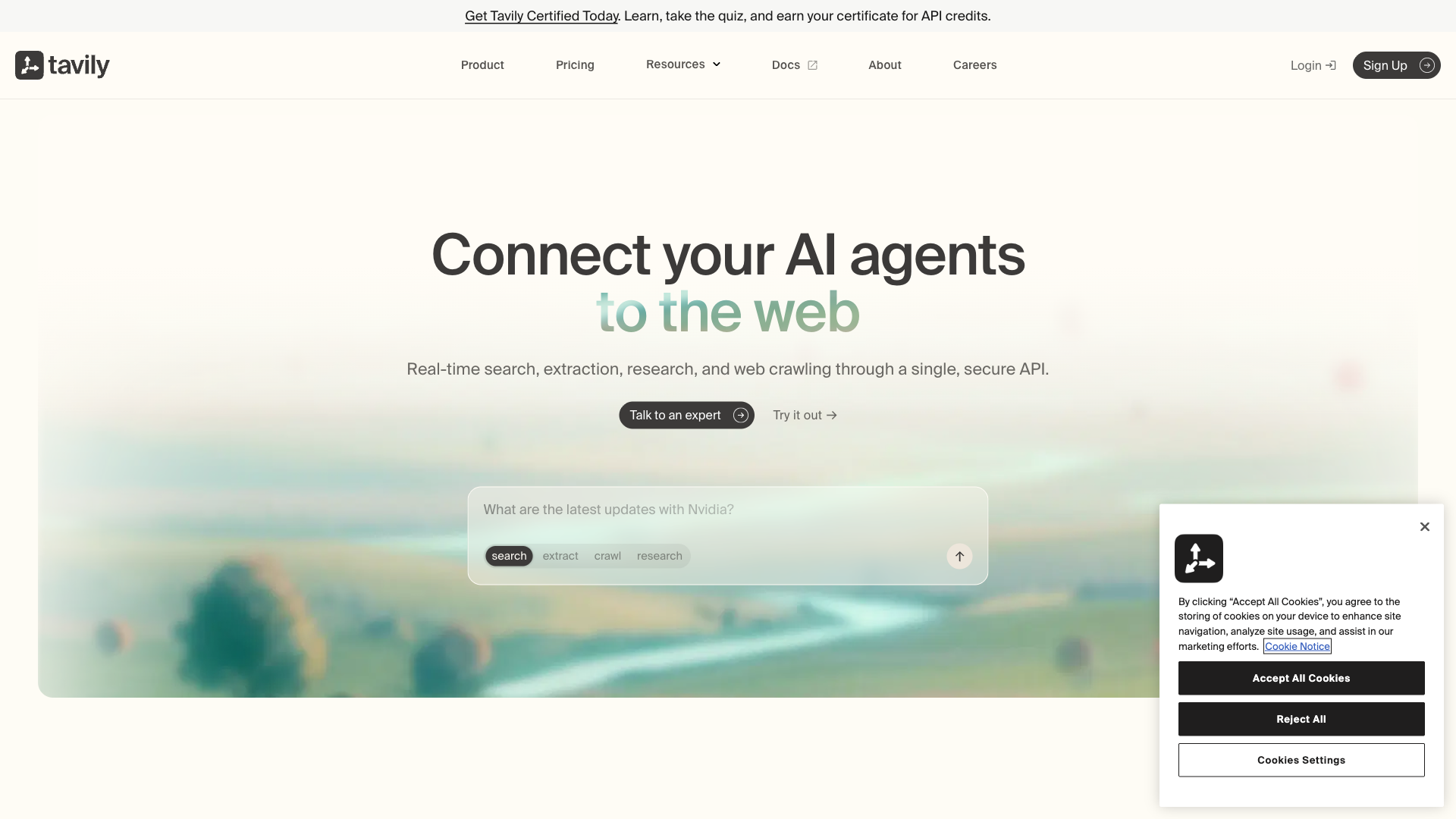 Tavily 是专为 AI 代理和大语言模型打造的实时网络搜索 API 平台,被定位为「AI 代理的互联网基础设施」。与传统搜索 API 返回原始结果不同,Tavily 提供经过 LLM 优化的结构化搜索结果,可直接供 AI 模型使用,有效减少 AI 幻觉。服务超过 100 万开发者,每月处理超过 1 亿次请求。