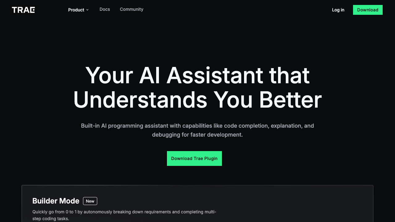 Trae - Plugin(前身为 MarsCode)是由字节跳动推出的一款 AI 驱动的开发环境插件,支持 VSCode 和 JetBrains 等主流 IDE。它主打“轻量级介入,重量级赋能”,让开发者在不改变现有编辑环境的前提下,无缝接入顶级 AI 辅助编程能力。