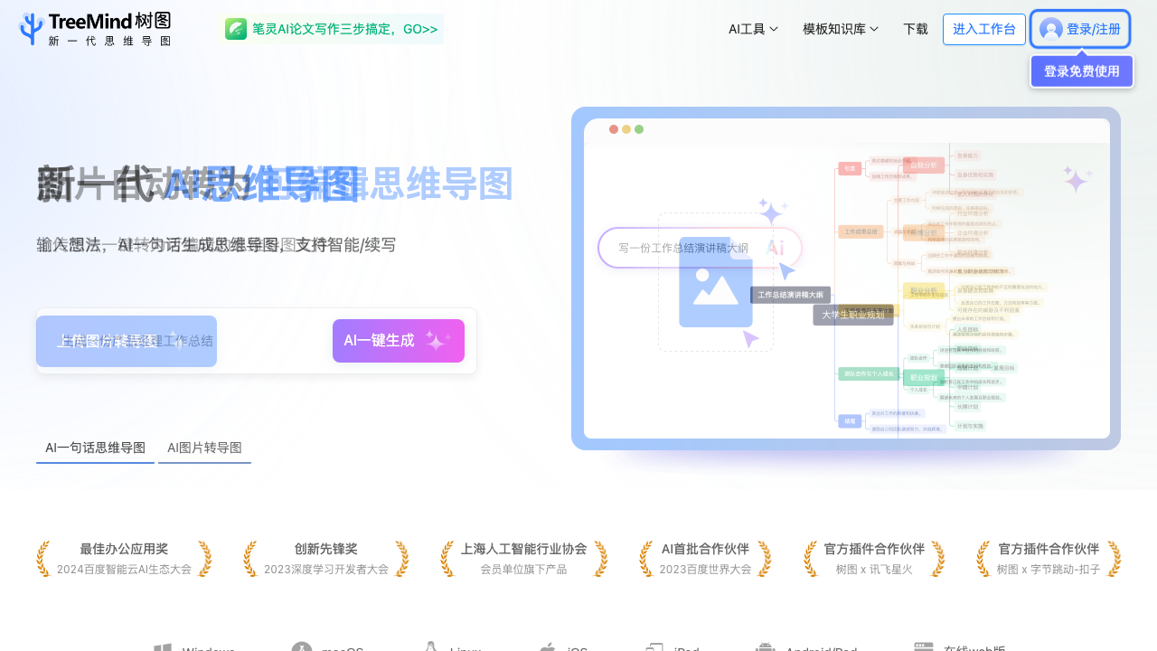 TreeMind(树图)是一款以“AI驱动与海量模板”为核心竞争力的新一代在线思维导图工具。它致力于降低思维导图的制作门槛,利用强大的AIGC能力和丰富的知识框架,让用户彻底告别面对空白画布发呆的困扰。