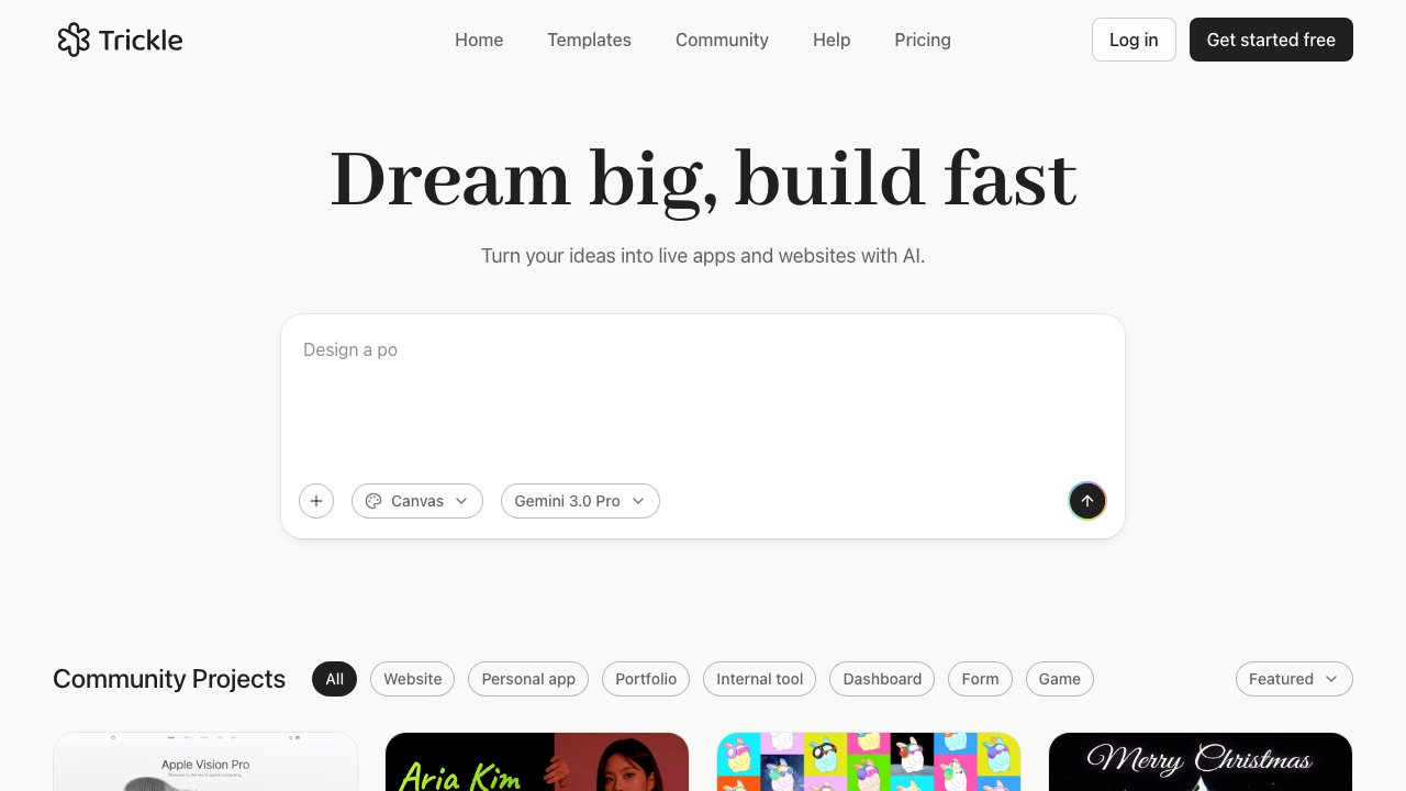 独特优势 相比于深度依赖终端环境的硬核 AI 编程工具,Trickle 创新的“白板式”交互极大降低了门槛。它巧妙地结合了设计与代码生成,零学习曲线,在极速原型开发和中小型应用构建领域独树一帜,比传统无代码工具更智能,比纯文本 AI 更具视觉感知。