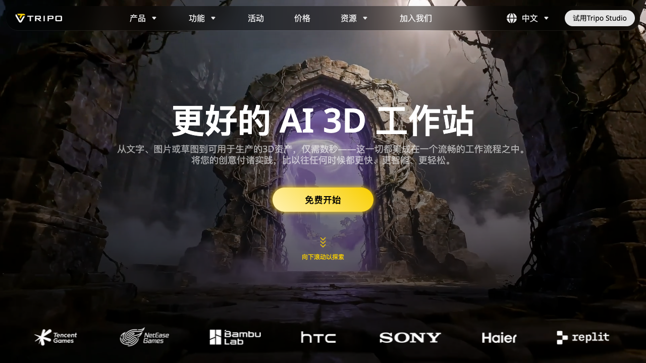 您可以通过访问官方网站来使用 Tripo。点击上方的“访问官网”按钮即可开始使用。