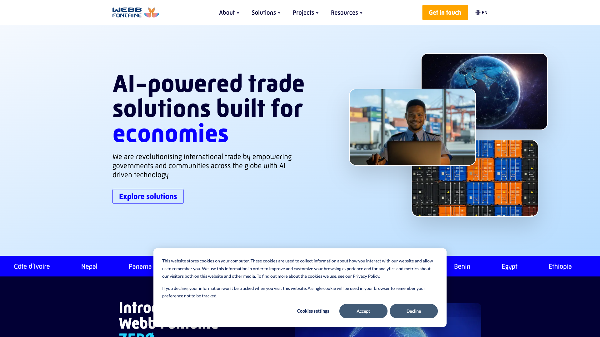 Webb Fontaine 是迪拜总部的全球贸易技术领军企业,专为各国政府提供 AI 驱动的海关管理解决方案。2026年发布的 Webb Fontaine ZERØ 平台基于大型语言模型(LLM)从零构建,将代理型AI能力引入海关系统,实现自主配置和实时监管适应。服务36个国家,拥有22年政府合作经验,获世界海关组织(WCO)杰出服务证书认可。