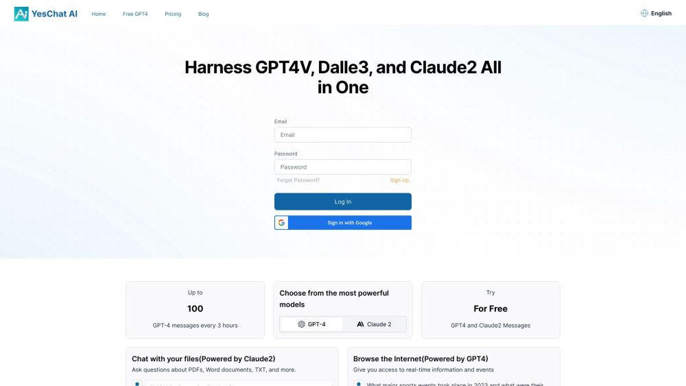 YesChat.ai 是一款 AI聊天,提供免费访问Claude 2、GPT4V和Dalle3的平台。